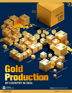 طلا همچنان یکی از پرتقاضاترین منابع طبیعی جهان است. در سال ۲۰۲۵، قیمت این فلز به بالاترین حد خود رسید که ناشی از تورم مداوم، تنش‌های ژئوپلیتیکی و خرید طلا توسط بانک‌های مرکزی در شرایط عدم قطعیت نسبت به اقتصاد جهانی بود. به گزارش « تجارت آسیا» این اینفوگرافی تولید جهانی طلا در سال ۲۰۲۴